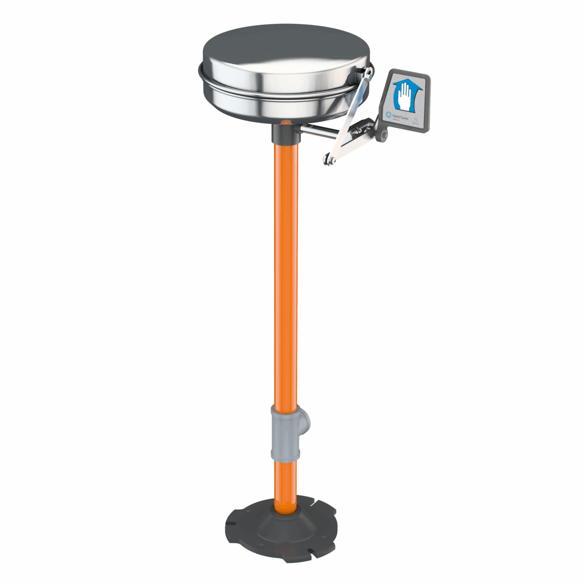 Application: Free standing, pedestal mounted eyewash. Unit has stainless steel cover to protect bowl from dust, dirt and other contaminants. Two GS-Plus™ spray-type spray heads deliver a flood of water for rinsing eyes.